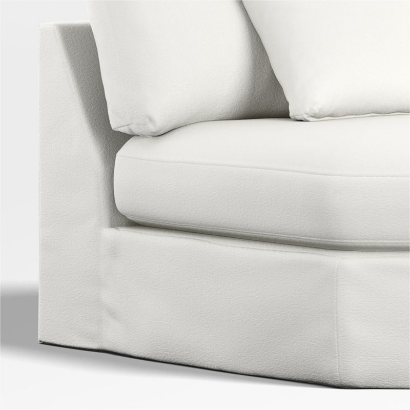 Fitted yet casual, our Willow slipcovers relax the collection's modern lines with cottage style. Tailored with topstitching, the wedge slipcovers have the laid-back cool of washed cotton that's easy to clean and stain resistant. Best dry cleaned, the slipcovers can be machined washed in cold water with mild detergent. Tumble dry on low for three minutes then dry on air dry cycle until slightly damp; return to frame while damp.