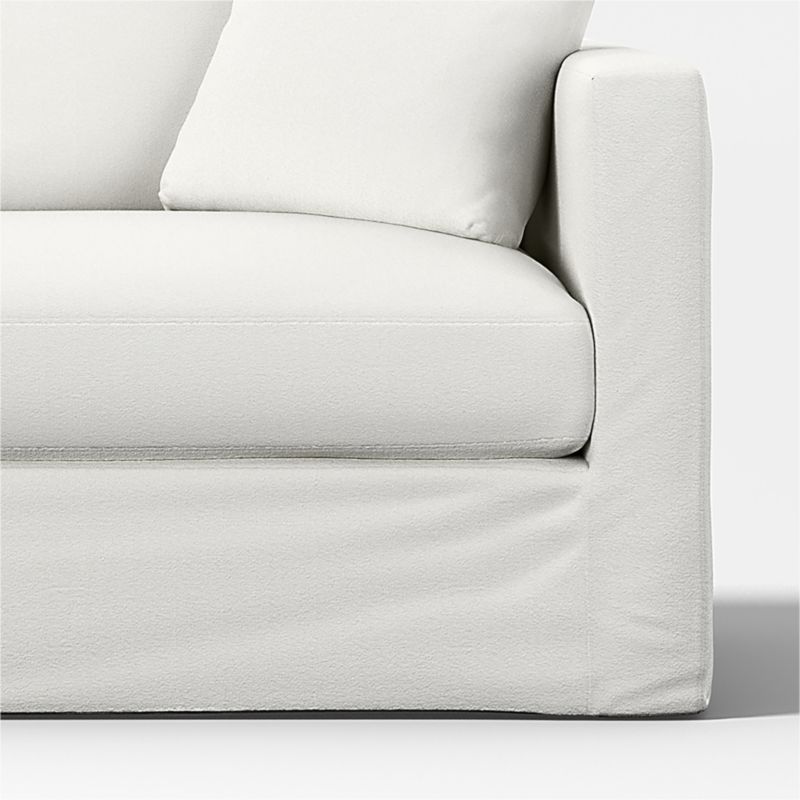 Fitted yet casual, our Willow slipcovers relax the collection's modern lines with cottage style. Tailored with topstitching, the right-arm sofa slipcover has the laid-back cool of washed cotton that's easy to clean and stain resistant. Best dry cleaned, the slipcover can be machined washed in cold water with mild detergent. Tumble dry on low for three minutes then dry on air dry cycle until slightly damp; return to frame while damp.