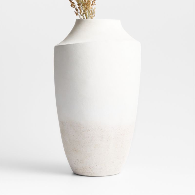 Evoking snow drifts or sand dunes, our Slope vase curves gracefully in shades of white. The tall ceramic vase is handcarved and -finished by skilled craftspeople, glazed matte white by hand with a soft, slightly textured finish. Due to its artisanal nature, each one is beautifully unique.