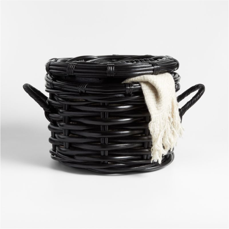 Small Black Woven Rattan Basket with Lid