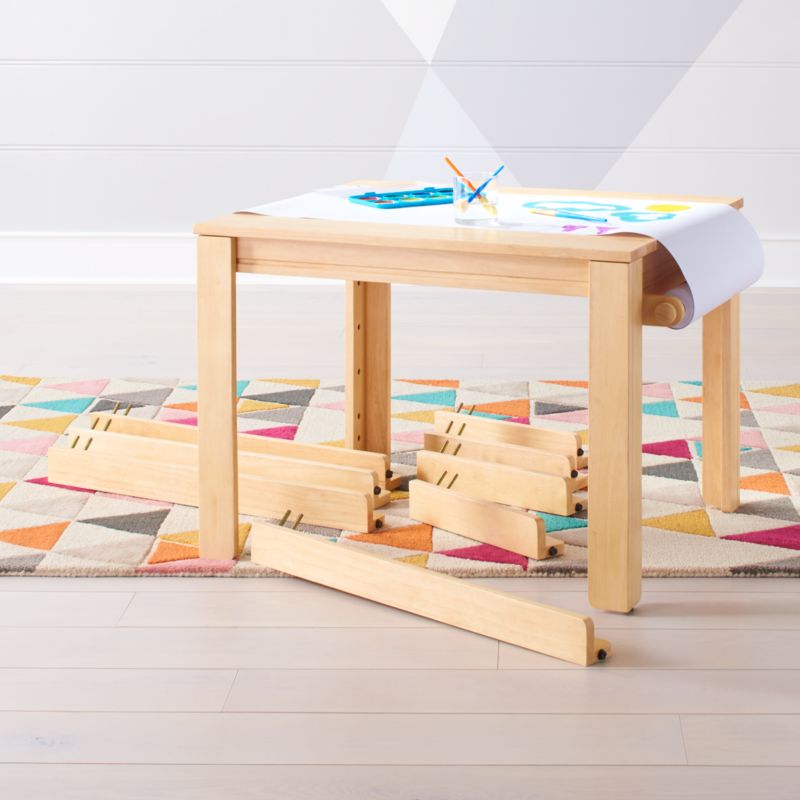 The Complete Small Natural Adjustable Table Set comes with three sets of different sized legs, so it's like a toddler play table, kids play table and kids desk in one. It includes Short, Medium and Tall Leg sets, which means you can easily position it at the right height for your little one. The table also has a paper holder and a roll of paper, so it doubles as a kids arts and crafts station. And with its compact design, it's an excellent fit for smaller playrooms and shared spaces.
