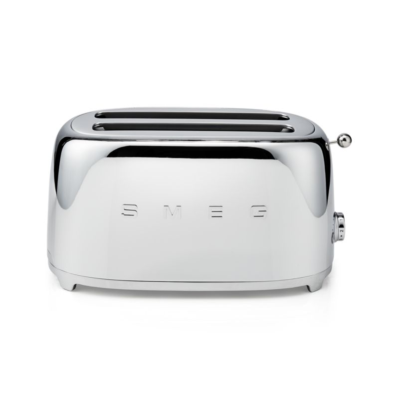 Finished in shiny chrome and accented with a charming ball lever knob, this retro toaster browns artisan bread, bagels and more at six levels with three convenient pre-set programs. Two extra-wide, extra-long slots accommodate all of your favorites, whether you're toasting four slices of sandwich bread or two slices of artisanal ciabatta.