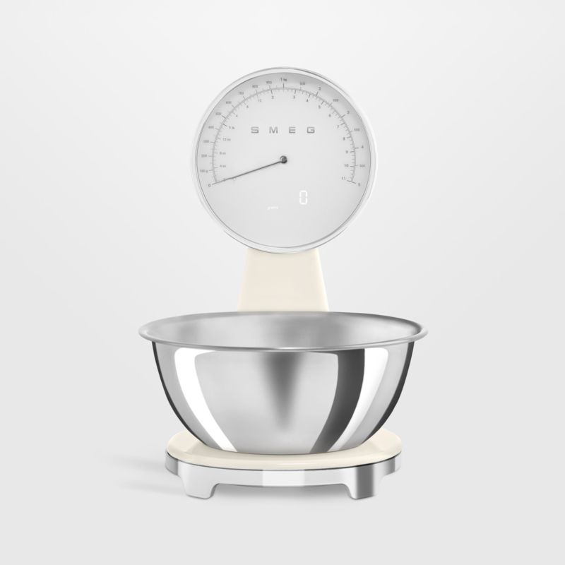 Whether you're weighing pounds of produce for canning or grams of cinnamon for baking, this vintage-inspired, cream-hued scale weighs out precisely what you need (while cutting down on dirty dishes). Toggle among grams, pounds, milliliters and ounces—a particularly handy feature when cooking from international cookbooks. The lightweight, rechargeable scale offers portability, offering up to 36 hours of use on an average charge. With a clever display that combines old-fashioned analog with a fresh white digital readout, this '50s-style scale delights on your kitchen countertop.