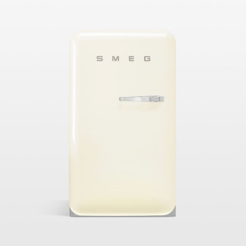 Inspired by classic mid-century appliances, SMEG refrigerators bring retro charm to the contemporary kitchen. This petite fridge features rounded corners, a glossy cream exterior and chrome accents for an impeccably throwback look. The modern-minded FAB10 opens to a flexible interior with adjustable glass shelves, crisper drawer and compact inner freezer compartment. A bottle shelf and two adjustable shelves on the door add organized storage. Designed to make efficient use of limited space, the freestanding refrigerator looks great at any angle with a sleek single door that opens to the left to accommodate your floor plan.