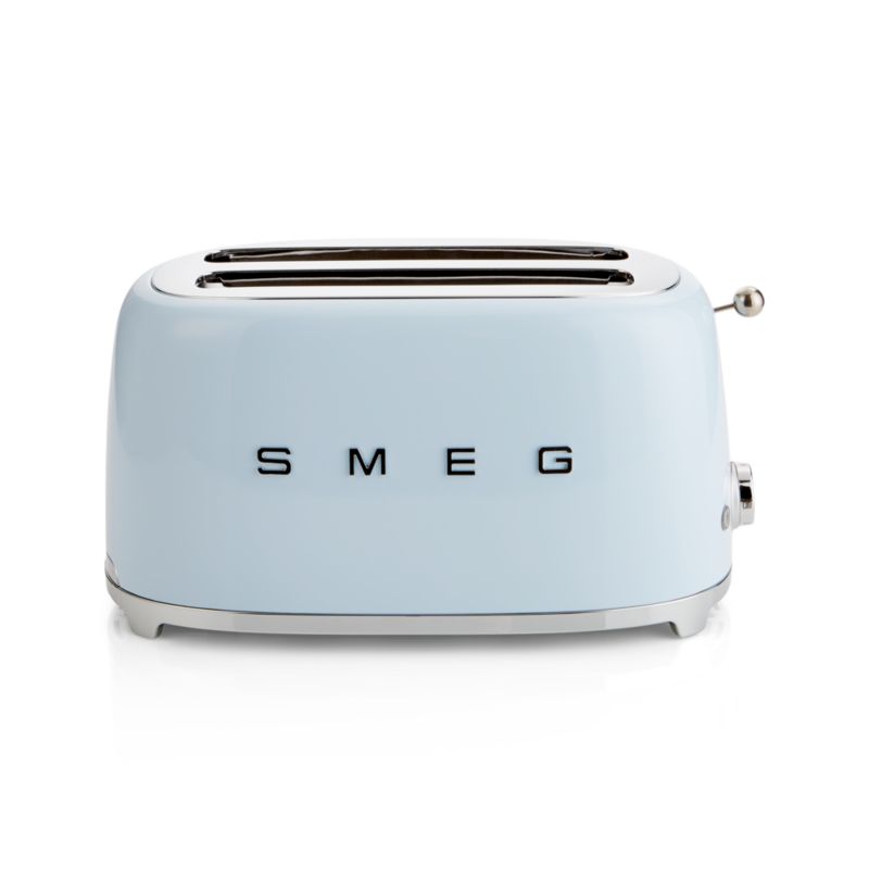 Enameled in pastel blue and accented with a charming ball lever knob, this retro toaster browns artisan bread, bagels and more at six levels with three convenient pre-set programs. Two extra-wide, extra-long slots accommodate all of your favorites, whether you're toasting four slices of sandwich bread or two slices of artisanal ciabatta.