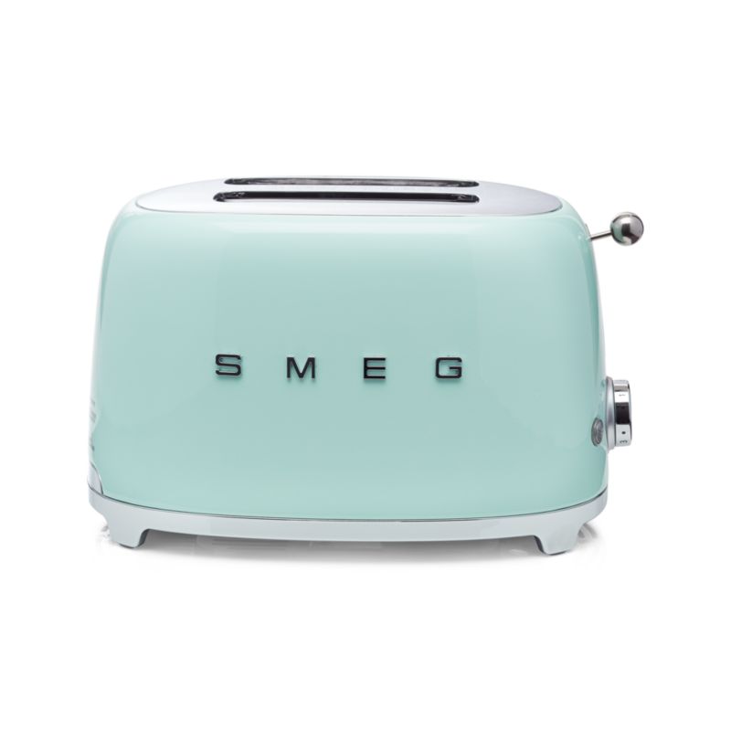Enameled in a fresh shade of retro mint green and accented with a charming ball lever knob, the retro toasters brown bread at six levels with three convenient pre-set programs. Extra-wide slots accommodate different slice widths and self-centering racks ensure even toasting.