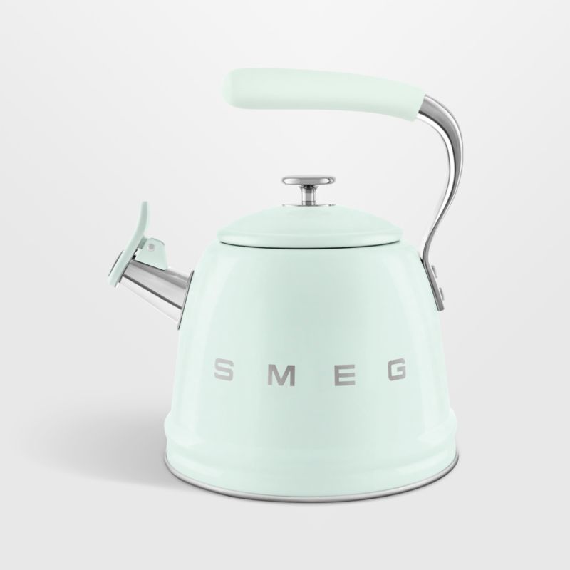 This stovetop kettle delights with its charming curves, pastel green hue and stainless steel accents. Suitable for use on all stovetops, the kettle sounds a delightful whistle when water reaches a boil. The silicone handle stays cool to the touch, and the conical spout pours neatly to make tea, French press or pour-over coffee, oatmeal and couscous.