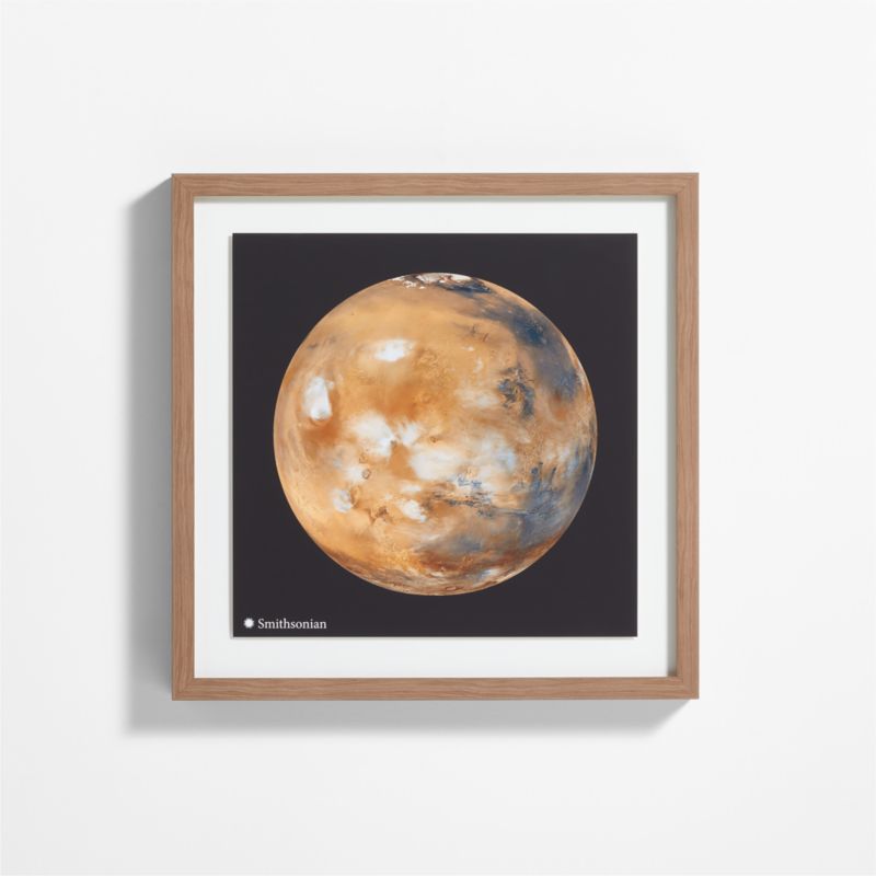 An imaginary trip to Mars awaits. Straight from the Smithsonian archives, this image of our planetary neighbor was taken by NASA in 1999. The framed giclée print captures the martian landscape of volcanoes and water ice clouds in fascinating detail.