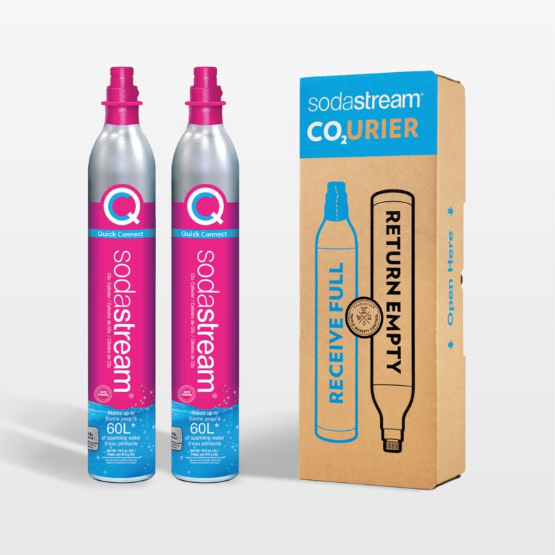 Stock up on Sodastream carbonators to keep the sparkling water coming. This set includes two carbonating gas cylinders, each one bubbling up to 60 liters of water in your Sodastream sparkling water machine.