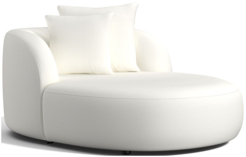 Our Sogno chaise lounge relaxes with oversized proportions and cozy cushioning for a high-design retreat where comfort is king. Styled with rounded contours and continuous curves, the pillowy chaise is upholstered in a fuzzy, high-pile chenille weave. Scaled casual and oversized for extra seating options, the chaise lets you choose your lounge—propped up against the armchair back or full-out horizontal. Whichever position you take, two differently sized throw pillows make sure your sit is properly snuggled.