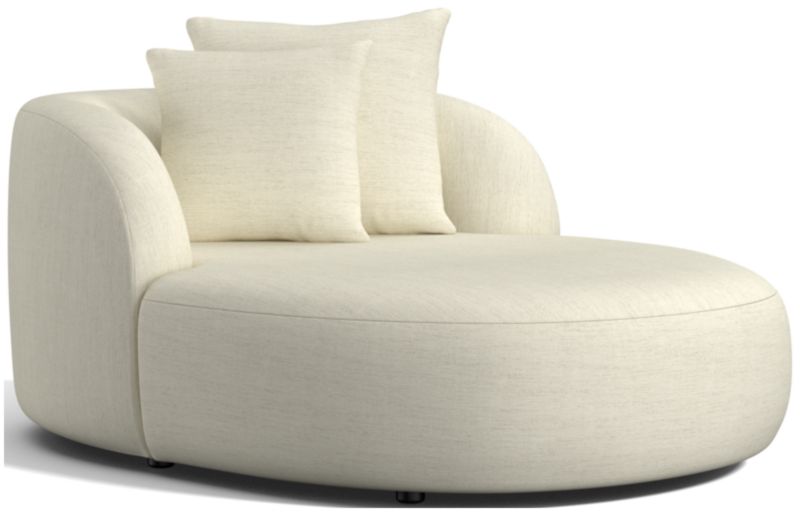 Our Sogno chaise lounge relaxes with oversized proportions and cozy cushioning for a high-design retreat where comfort is king. Styled with rounded contours and continuous curves, the pillowy chaise is upholstered in a fuzzy, high-pile chenille weave. Scaled casual and oversized for extra seating options, the chaise lets you choose your lounge—propped up against the armchair back or full-out horizontal. Whichever position you take, two differently sized throw pillows make sure your sit is properly snuggled.
