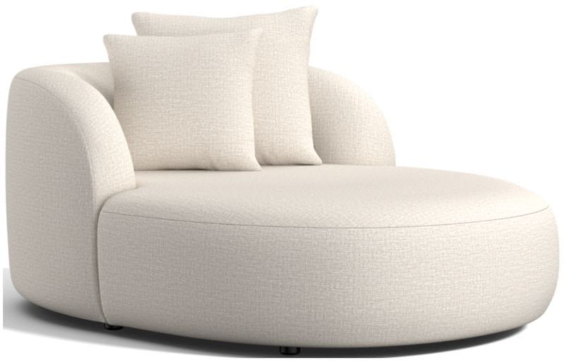 Our Sogno chaise lounge relaxes with oversized proportions and cozy cushioning for a high-design retreat where comfort is king. Styled with rounded contours and continuous curves, the pillowy chaise is upholstered in a fuzzy, high-pile chenille weave. Scaled casual and oversized for extra seating options, the chaise lets you choose your lounge—propped up against the armchair back or full-out horizontal. Whichever position you take, two differently sized throw pillows make sure your sit is properly snuggled.
