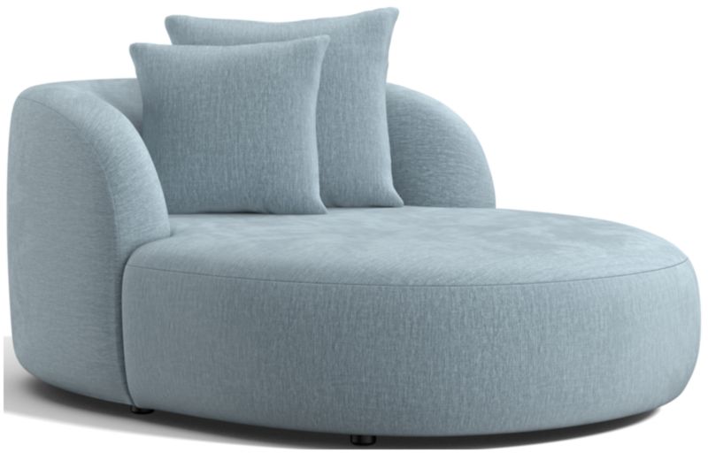 Our Sogno chaise lounge relaxes with oversized proportions and cozy cushioning for a high-design retreat where comfort is king. Styled with rounded contours and continuous curves, the pillowy chaise is upholstered in a fuzzy, high-pile chenille weave. Scaled casual and oversized for extra seating options, the chaise lets you choose your lounge—propped up against the armchair back or full-out horizontal. Whichever position you take, two differently sized throw pillows make sure your sit is properly snuggled.