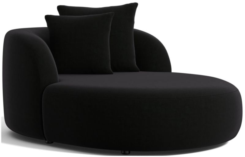 Our Sogno chaise lounge relaxes with oversized proportions and cozy cushioning for a high-design retreat where comfort is king. Styled with rounded contours and continuous curves, the pillowy chaise is upholstered in a fuzzy, high-pile chenille weave. Scaled casual and oversized for extra seating options, the chaise lets you choose your lounge—propped up against the armchair back or full-out horizontal. Whichever position you take, two differently sized throw pillows make sure your sit is properly snuggled.