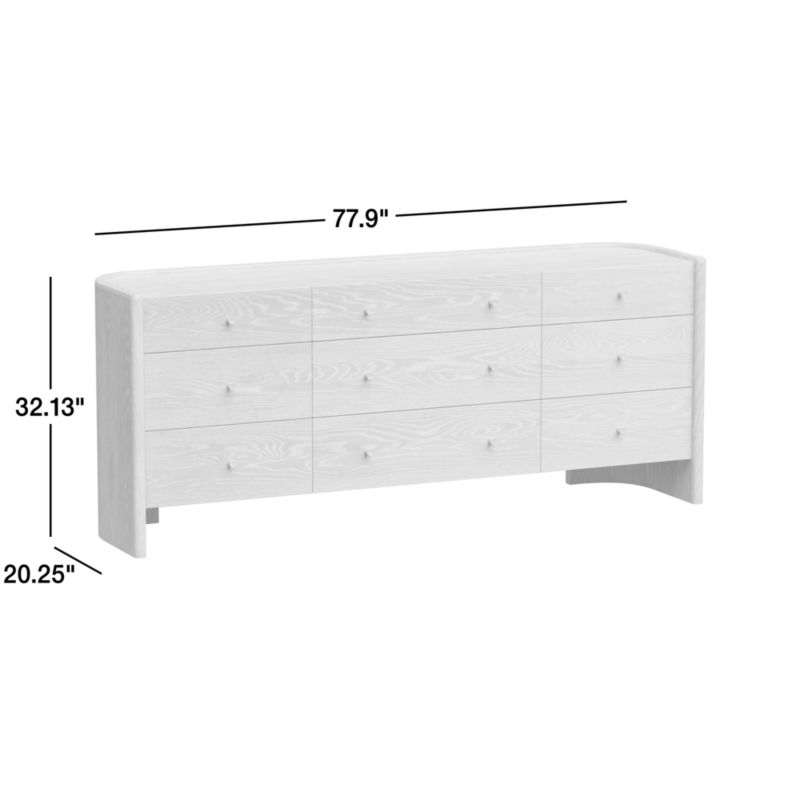 Soleri 77.9" Cerused Natural Oak Wood 9-Drawer Dresser