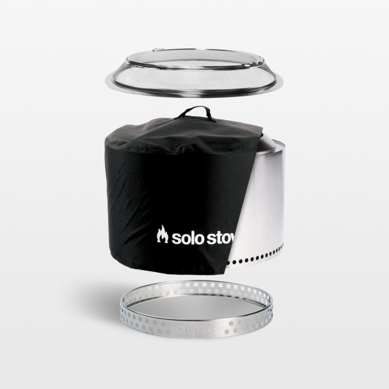 Solo Stove lets you enjoy the warmth, charming crackling sounds and glowing ambiance of a wood-burning fire without the smoke. The easy-to-assemble stainless steel fire pit employs Signature 360° Airflow to superheat the air and reduce smoke before it can get to your clothes and hair for ultimate warmth and comfort. Solo Stove's largest model, the Yukon is perfect for warming up parties and family gatherings. When the embers have cooled, the removable base plate and ash pan make clean-up a breeze. A spark shield, stand, =and cover are included.