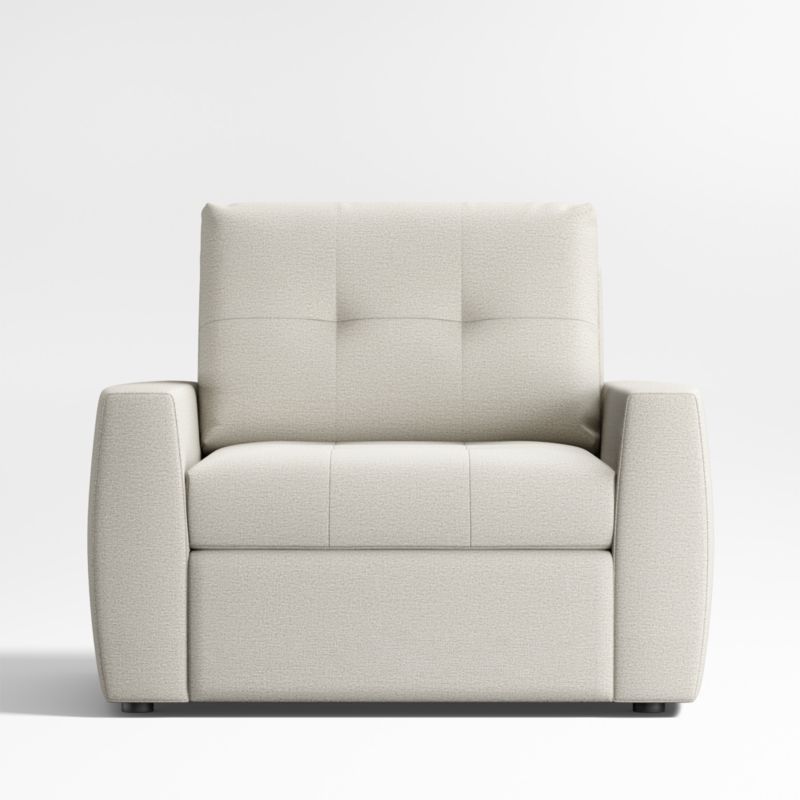 Whether providing a seat or an overnight stay, our Sombra is a supercomfortable, design-conscious sleeper chair with lots of extras. Clean lines, buttonless tufting and convex-contoured track arms capture the eye, while seat and back cushions offer soft-yet-supportive comfort. When it's time to retire, the chair unfolds a cot-sized mattress that's eight inches longer than traditional sleeper mattresses. Your overnight guests will thank you for the sleep-inducing comfort provided by the high-density mattress. The sleeper requires zero wall clearance so feel free to position the chair right up against the wall—a great option for small spaces.