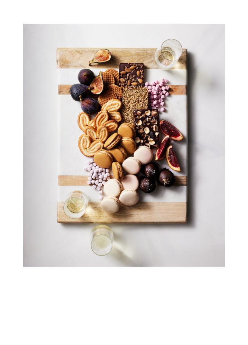 Trade the cheese & meat for something sweet. Offercontrasting textures like gooey brownies & crunchy macarons.