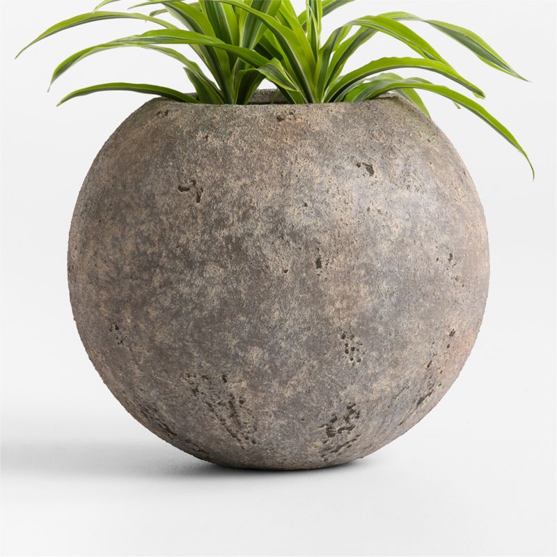 Our bestselling Sphere planter takes on a coastal vibe with a rustic textured finish. Adding modern geometry to outdoor spaces, the round planter is crafted of a lightweight mix of fiberglass, cement and sand that's lightweight yet durable. Choose from two sizes of planters finished in bronze or ivory, or combine them all for an inspired container display.