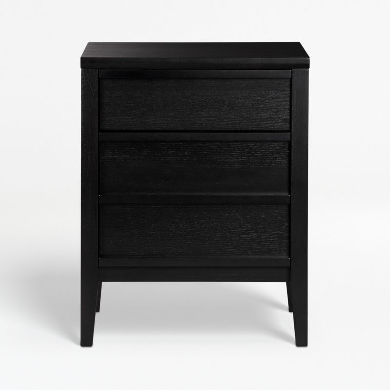 Designed by Mark Daniel, the top drawer offers ample storage for office supplies and accessories. What appears to be the bottom two drawers is a single file cabinet that accommodates letter or legal-size files. The Spotlight Ebony Filing Cabinet is a Crate and Barrel exclusive.