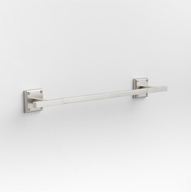 Sometimes it's the small things that pull a room together. That's why we've designed a hardware collection with modern silhouettes, clean lines and a touch of tradition to give your bathroom that perfect finishing touch. Rounded corners and smoothed edges soften the minimalist design of the square towel bar and wall plates made of brass with a brushed nickel finish. The 18-inch towel bar mounts easily to the wall with included hardware.