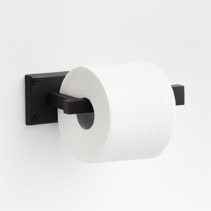 Sometimes it's the small things that pull a room together. That's why we've designed a hardware collection with modern silhouettes, clean lines and a touch of tradition to give your bathroom that perfect finishing touch. Rounded corners and smoothed edges soften the minimalist design of the toilet paper holder made of matte black-finished brass. The open-ended design makes it easy to load a roll of toilet paper, and the mix of square and rectangular shapes gives the holder a geo-forward look that's bold and contemporary. The fixture is ready to mount on the wall with included hardware.