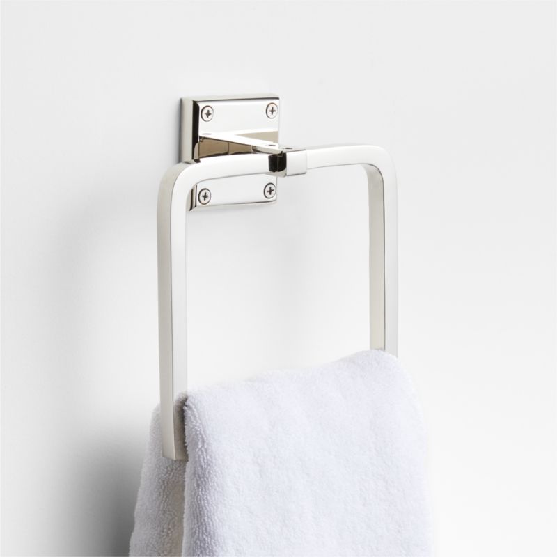 Sometimes it's the small things that pull a room together. That's why we've designed a hardware collection with modern silhouettes, clean lines and a touch of tradition to give your bathroom that perfect finishing touch. Rounded corners and smoothed edges soften the minimalist design of the hand towel ring made of brass finished in polished chrome. The towel holder threads an open, stirrup-shaped square through a rectangular rod affixed to a square wall plate for a look that's bold and geo-focused. Included hardware makes it easy to mount the towel ring on the wall for an instant bath refresh.