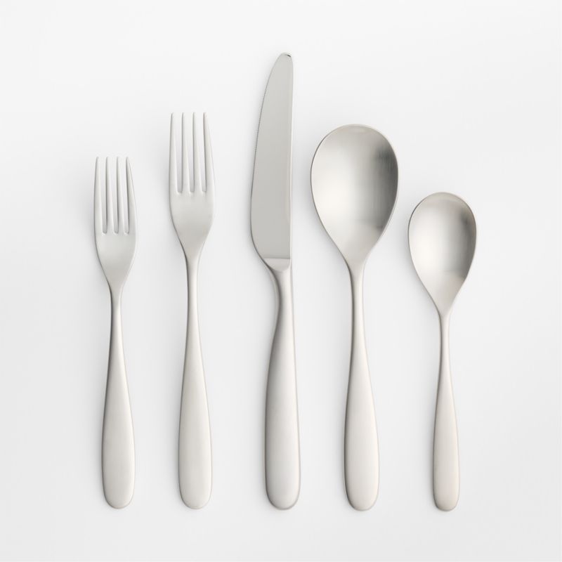 Sculpted flatware silhouettes by Robert Welch with a soft matte finish, perfectly simple for every day or entertaining. Nicely shaped, balanced handles are a delight to hold.