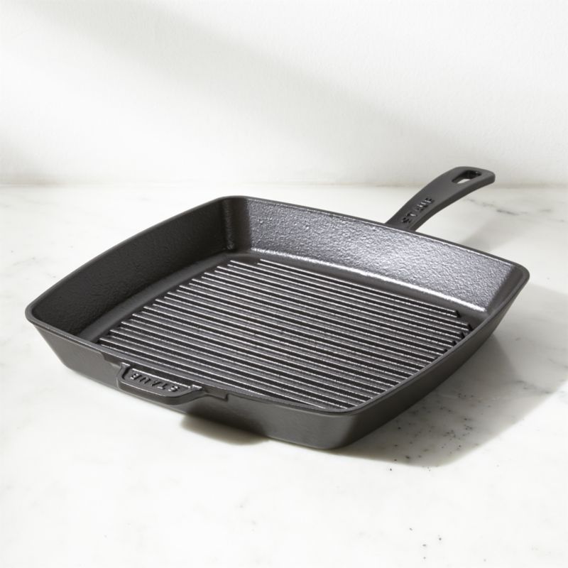 Preferred by some of the world's greatest chefs, French-made Staub cookware is renowned for its superior heat retention and oven-to-table good looks. Made of cast iron with a matte black, chip-resistant enamel coating, this grill pan retains heat beautifully and can be used on an outdoor grill as well as a stovetop burner. Ridges on the bottom sear grill marks into food, while the rough texture provides exceptional browning.