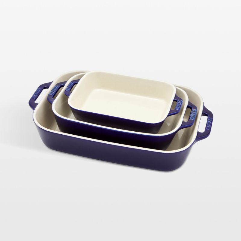 Staub Dark Blue Rectangular Bakers, Set of 3