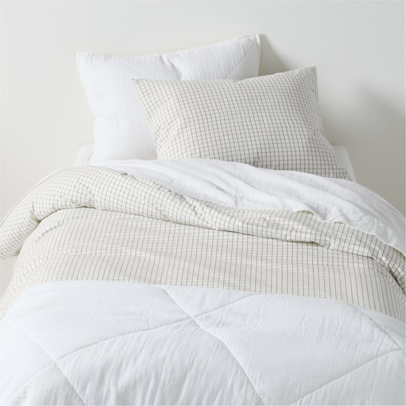 Stax Mini Grid Grey Yarn-Dyed Organic Cotton Kids Twin Duvet Cover