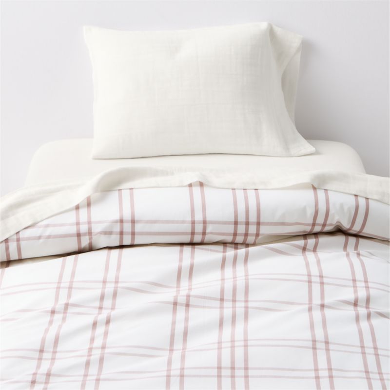Sewn of pure organic cotton for superior comfort, beauty and strength, our Stax toddler duvet cover adds a level of coziness that's hard to beat. Crisscross stripes in soothing hues form a grid pattern that keeps the bed looking neat, tidy and always in line. Pair the duvet cover with our coordinating Stax bedding for a tied-together look.