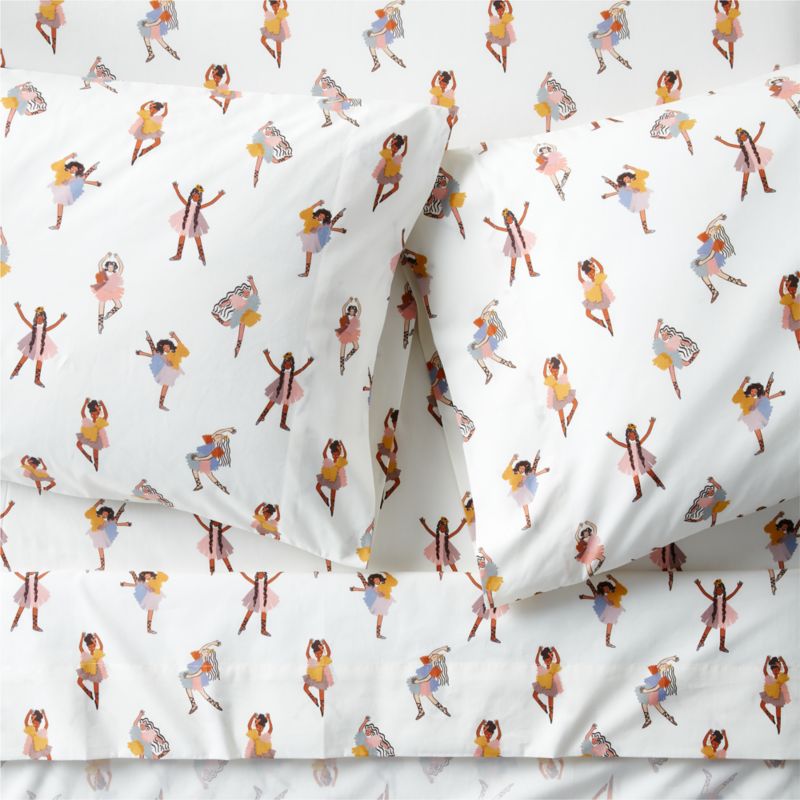 Want to get kids excited about bedtime? Layer their bed with sheets that play to their interests. Little ones will dream sweet ballet dreams on our Dancer Sheet Set, as ballerinas leap and twirl across cozy-soft, crisp white organic cotton.