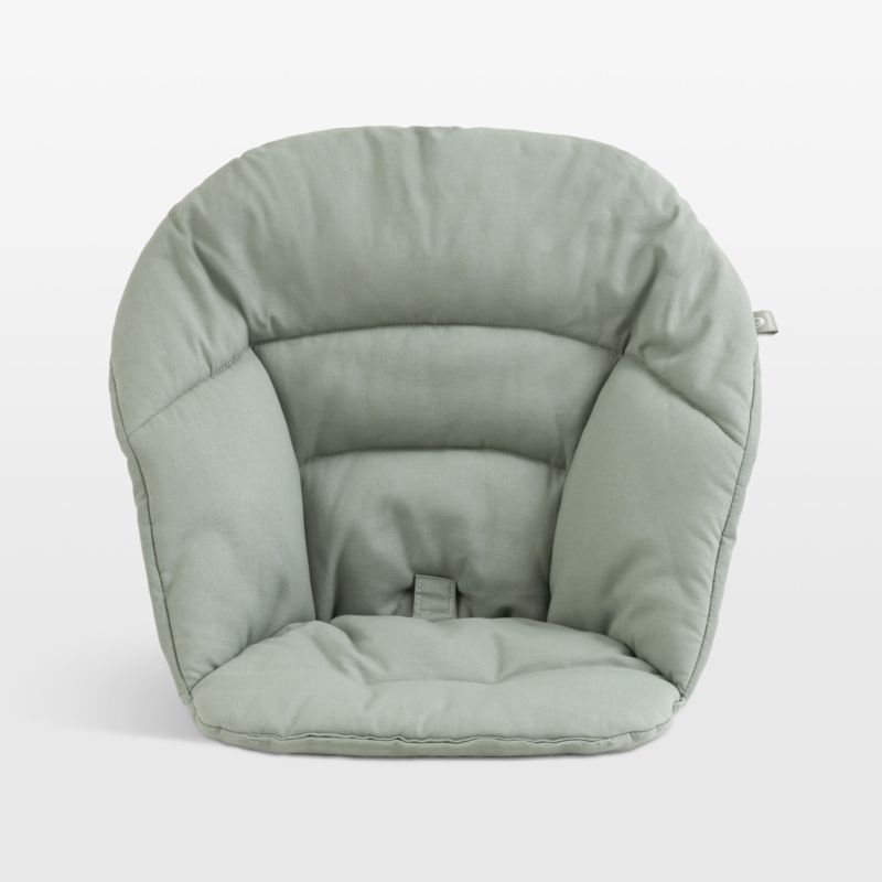 "Soften the seat of your little one's Stokke® Clikk high chair with this comfortable cushion in a serene Glacier Green hue. The reversible high-chair cushion features a coating on one side that makes it easy to wipe clean. Crafted of soft, breathable cotton, the structured pad provides extra support for babies who are learning to sit. The cushion mounts and removes quickly, then cleans up easily in the washing machine so you can keep it fresh for mealtime.