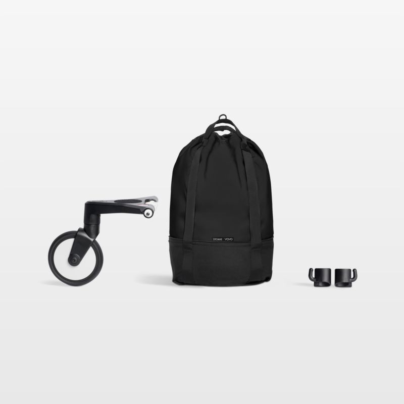 Add convenient storage to your stroller with the Stokke® YOYO® Stroller Travel Bag. This stylish bag quickly hooks onto the stroller and is designed for heavy loads—it even has its own support wheel to keep the stroller safe and upright. Two carrying handles and a flat bottom make the stroller bag handy for shopping or keeping all your baby's essentials at the ready.