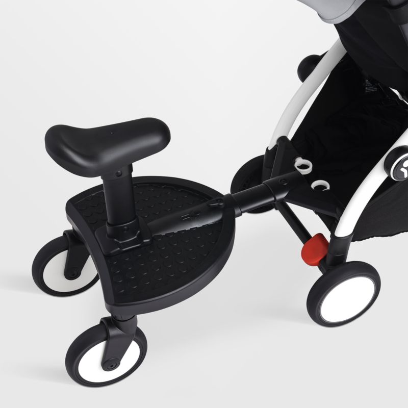 Your older child may have outgrown the stroller, but they can still get tuckered out. Enter the YOYO® stroller board from Stokke®. With a removable saddle kids can sit on or a platform they can stand on, it snaps onto the back of the YOYO stroller with one simple click. When it's not in use, it stores away in two different positions for minimal bulk.