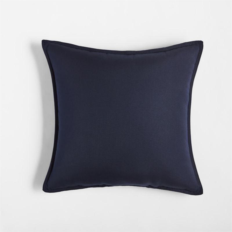 Add a splash of deep blue to your porch or patio with our square outdoor pillow covered in weather-, mildew- and fade-resistant Sunbrella acrylic in navy. A Crate and Barrel exclusive, the crisply tailored accent pillow is made of solution-dyed Sunbrella acrylic that is UV-resistant for up to 2,200 hours to look fresh all season long. Layer with our solid and patterned pillows on your sofa or chaise for a coordinated outdoor space.