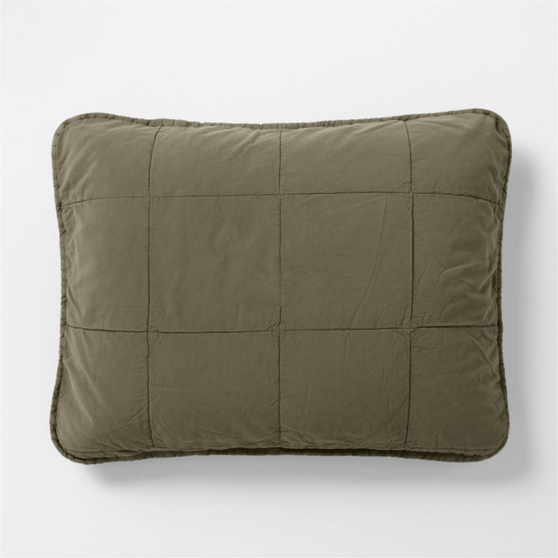 Our Sunwashed pillow sham updates a classic bedding basic with organic cotton, recycled batting and a modern quilted grid. The lightweight cover suits all seasons, while its clean box pattern suits a variety of styles. Layering beautifully with the other Burnt Green bedding in our collection, this sham in mossy green-brown makes an irresistibly cozy bed year-round.