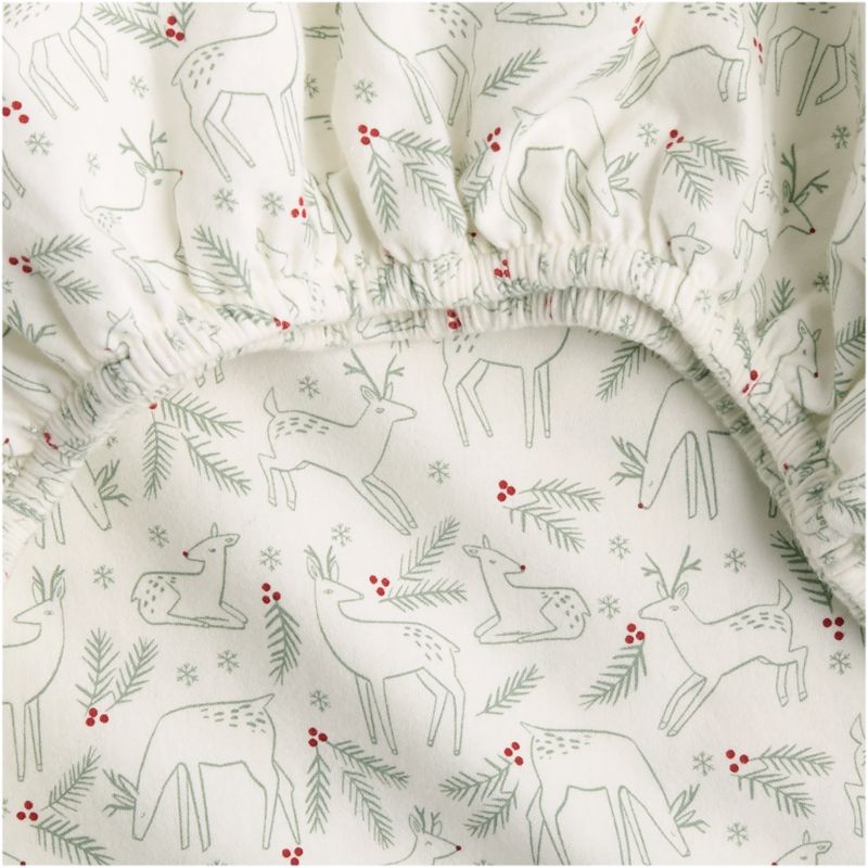 Tuck into the softness of the season with our Supercozy organic cotton flannel crib sheet. Covered in frolicking reindeer, pine branches and the occasional Rudolph sighting, the print brings a playful holiday spirit to bedtime. Made with breathable brushed flannel, it's extra warm and snuggly—just right for cooler nights and wintry mornings.