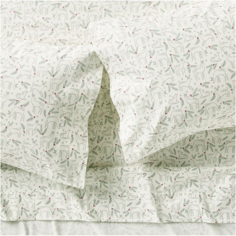 Tuck into the softness of the season with our Supercozy organic cotton flannel sheet set. Covered in frolicking reindeer, pine branches and the occasional Rudolph sighting, the print brings a playful holiday spirit to bedtime. Made with breathable brushed flannel, it's extra warm and snuggly—just right for cooler nights and wintry mornings spent under the covers.