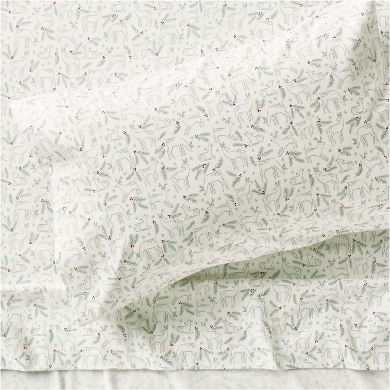 Tuck into the softness of the season with our Supercozy organic cotton flannel sheet set. Covered in frolicking reindeer, pine branches and the occasional Rudolph sighting, the print brings a playful holiday spirit to bedtime. Made with breathable brushed flannel, it's extra warm and snuggly—just right for cooler nights and wintry mornings spent under the covers.