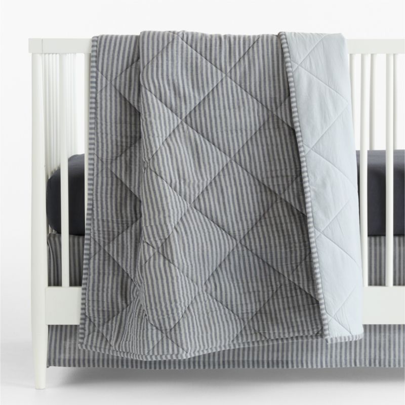 • View Supersoft Deep Indigo Quilted Striped 100% Organic Cotton Gauze Baby Crib Quilt - image 3 of 6