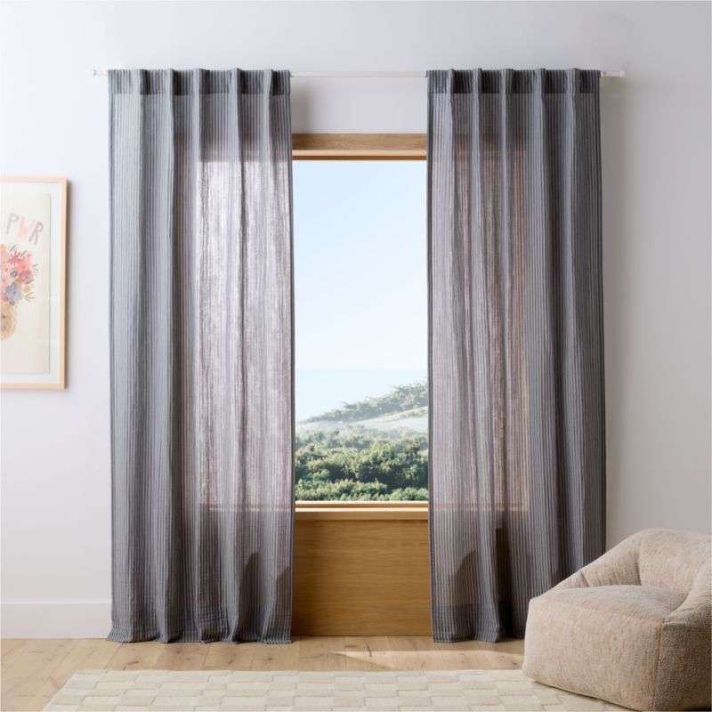 Our semi-sheer Supersoft curtains transform not just the window, but your entire nursery, bedroom or playspace—filtering light for a dreamy, diffused glow. Made of 100% organic cotton gauze, they have a beautifully soft, crinkly texture and are adorned with subtle, go-with-everything stripes. Hang them on their own to let the light and breeze flow through, or pair them with a heavier curtain on a double rod for flexibility.