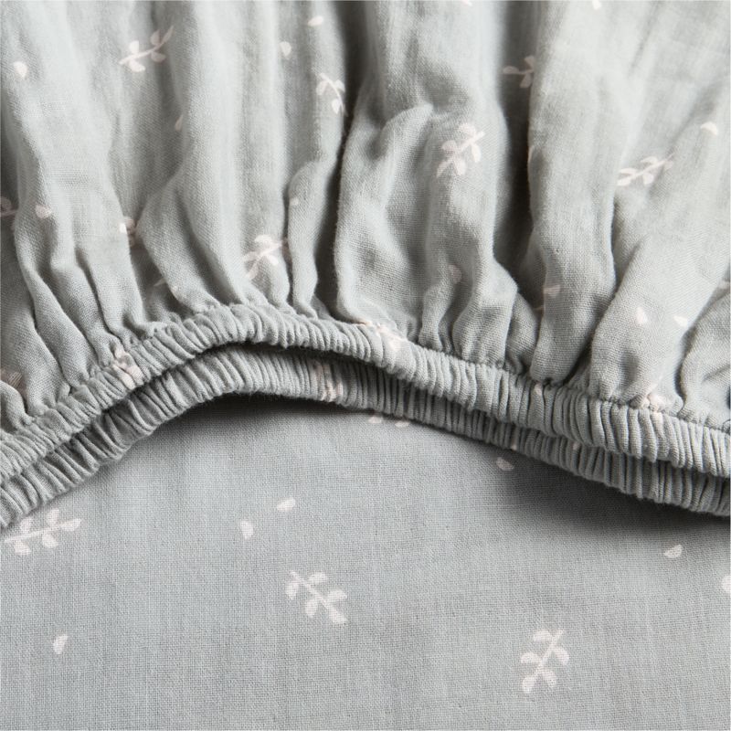 • View Supersoft Mist Blue Leaf Print 100% Organic Cotton Gauze Baby Crib Fitted Sheet - image 7 of 7