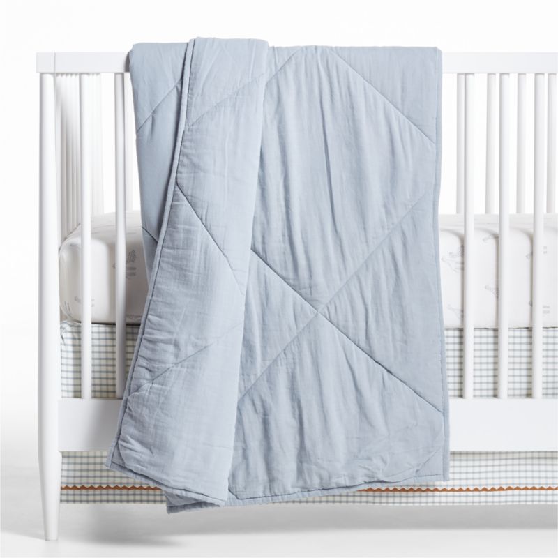 Supersoft Mist Blue 100% Organic Cotton Gauze Baby Crib Quilt