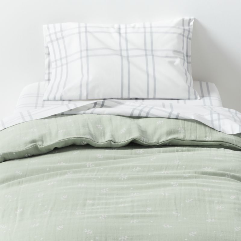 Supersoft Muted Teal Leaf Print Organic Cotton Gauze Toddler Duvet Cover