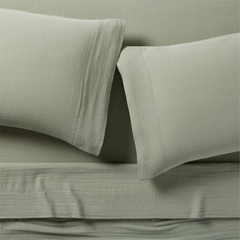 Supersoft Organic Cotton Gauze Shadow Sage Green Standard Pillowcases, Set of 2