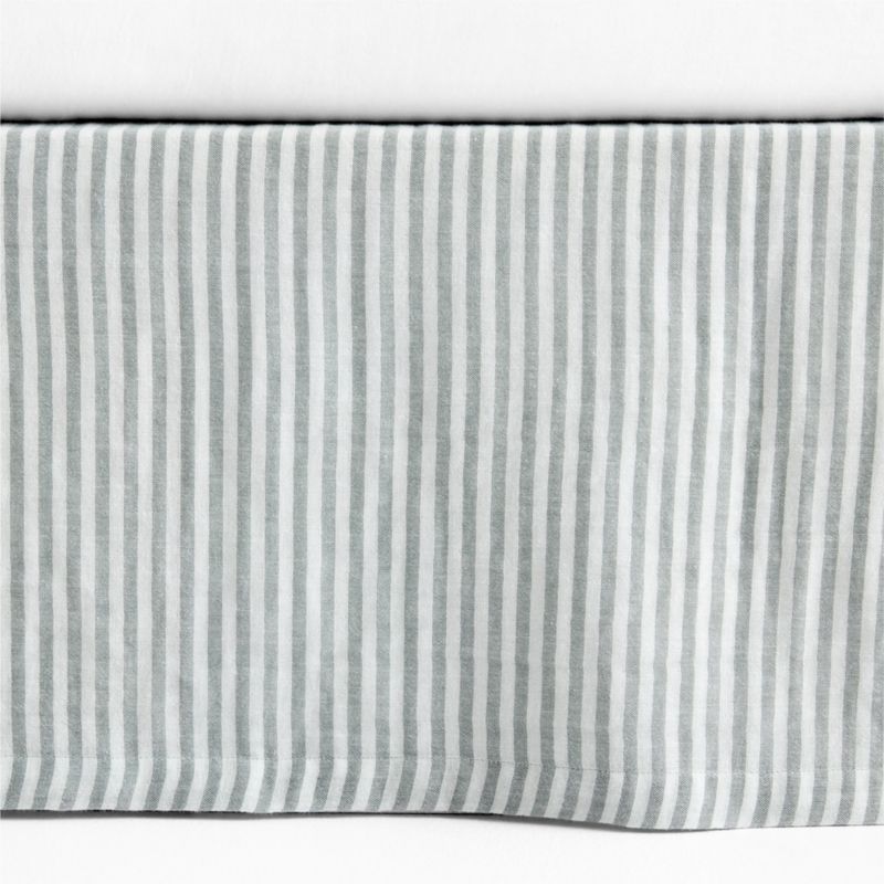 Tie your nursery look together with our Supersoft striped crib skirt. Crafted from our popular Supersoft organic cotton gauze, it's placed underneath the mattress, allowing the side panels to drape over the edges and hide the space beneath. Pair it with the matching crib sheet for a serene space.