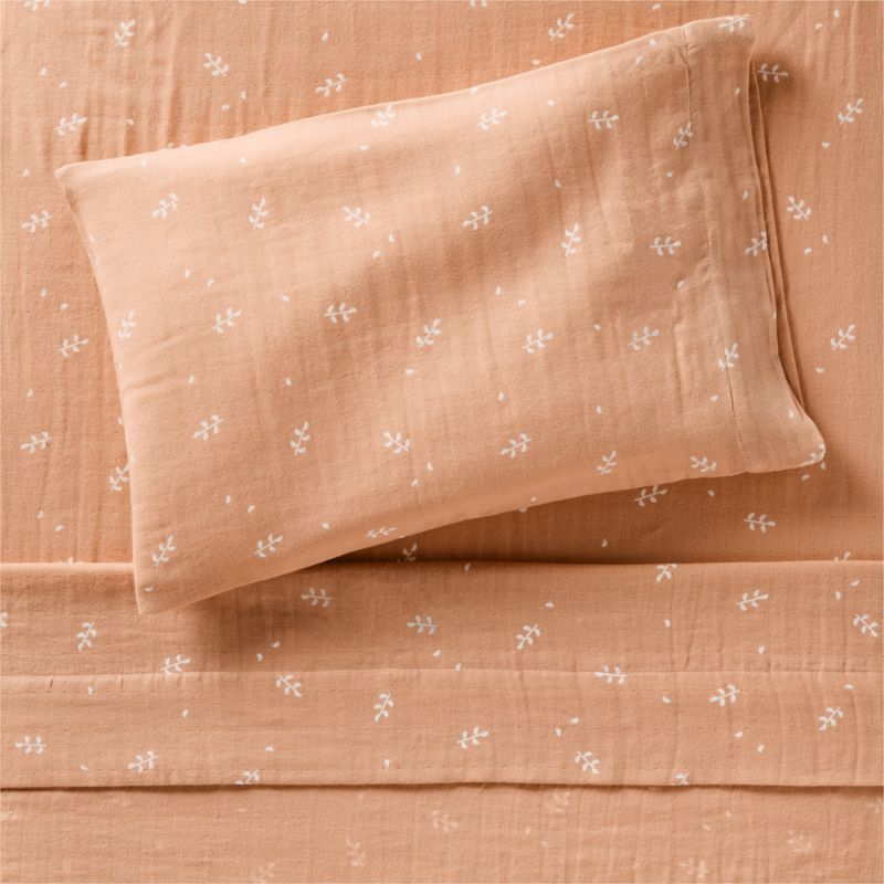 Our Supersoft toddler sheet set combines breathability and warmth to keep little ones cozy. It's crafted using a double-layer weaving technique to create pockets of air that hold warmth. And the earthy terracotta hue with ivory leaf print brings a subtle touch of nature to their sleep space. Added bonus: It gets softer and fluffier after each wash. Complete the look with our coordinating Supersoft pillow sham and toddler duvet cover.