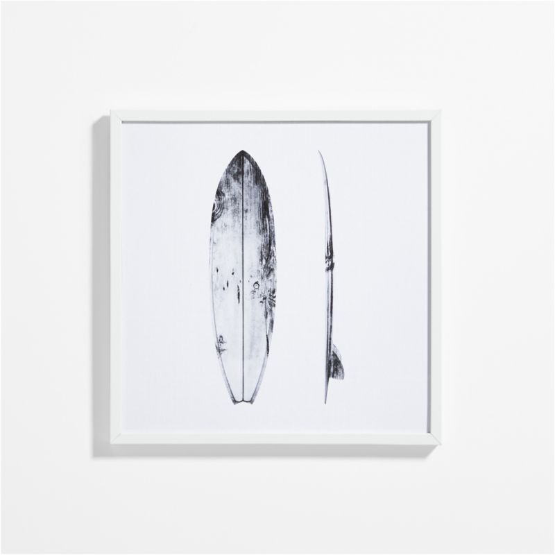 Simple yet striking, this surfboard wall art draws on surfer and artist Gal Design's lifelong love of the sea. This Crate & Kids exclusive fine art print uses high-quality giclée technology to reproduce the original collage and photography work faithfully and meticulously on acid-free 100% cotton rag paper. Presented under lightweight acrylic in a white frame, this square art print is a bold, beachy decor accent for grommets and grown paddlers alike.